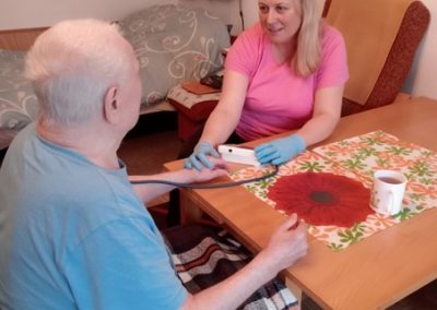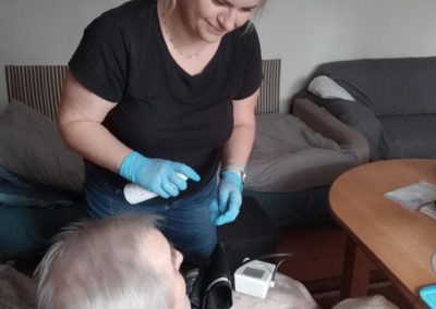 Dbamy o jego higienę, przygotowanie posiłku, podanie leków, robimy zakupy, dbamy o czystość pokoju, załatwiamy sprawy urzędowe chorego, wychodzimy na spacer itp.